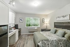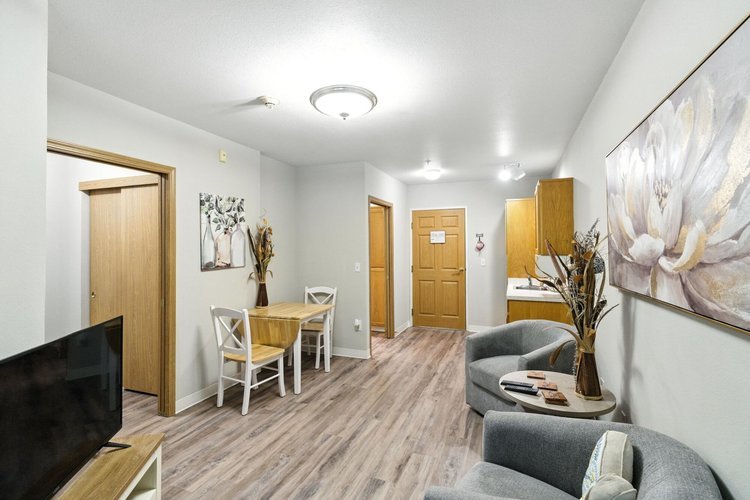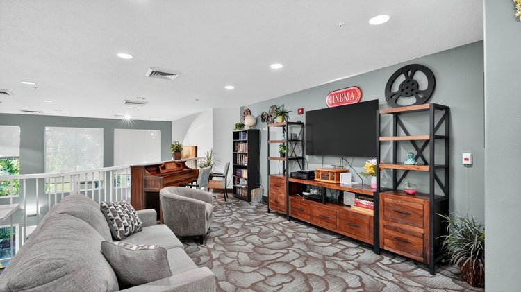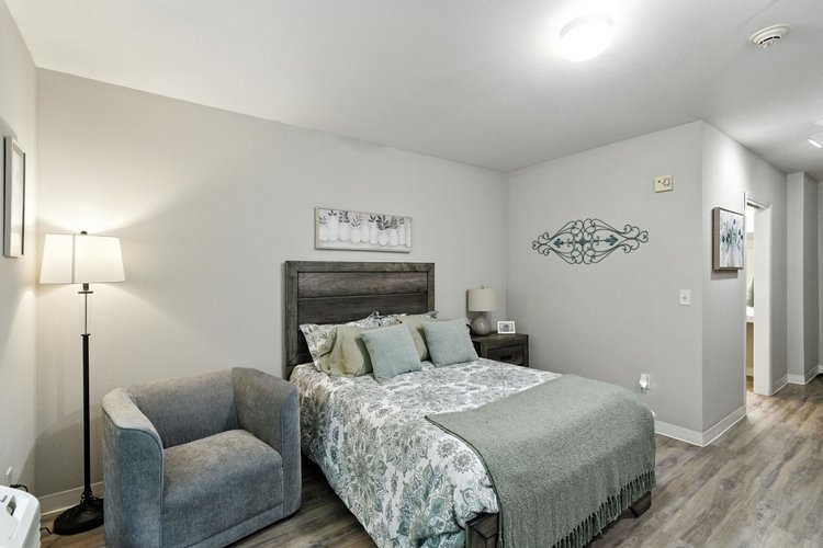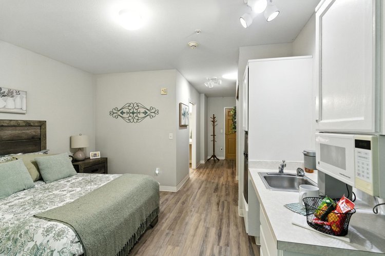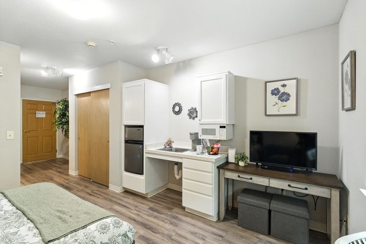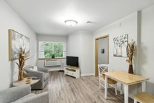 The community features thoughtfully designed residences with studio and one-bedroom apartment options that provide privacy while remaining close to shared living spaces and amenities. Apartments typically include convenient features such as kitchenettes, private bathrooms, and emergency call systems to support both comfort and safety. The community layout includes welcoming lounges, dining areas, activity spaces, and outdoor walking paths where residents can relax, socialize, or participate in daily programs.