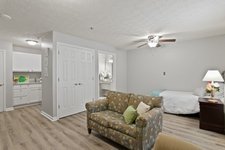 The community boasts a variety of amenities designed to enhance residents’ quality of life. Residents can enjoy chef-inspired meals served three times daily in a spacious dining area, with flexible menu options to cater to individual preferences. The community offers a range of activities, including live music, arts and crafts, yoga, and offsite excursions, ensuring that residents have ample opportunities for social interaction and personal growth. Additional amenities include a beauty/barber shop, wellness center, and comfortable indoor and outdoor spaces for relaxation and socialization. Housekeeping, laundry services, and transportation for events and appointments are also provided, allowing residents to focus on enjoying their daily lives.