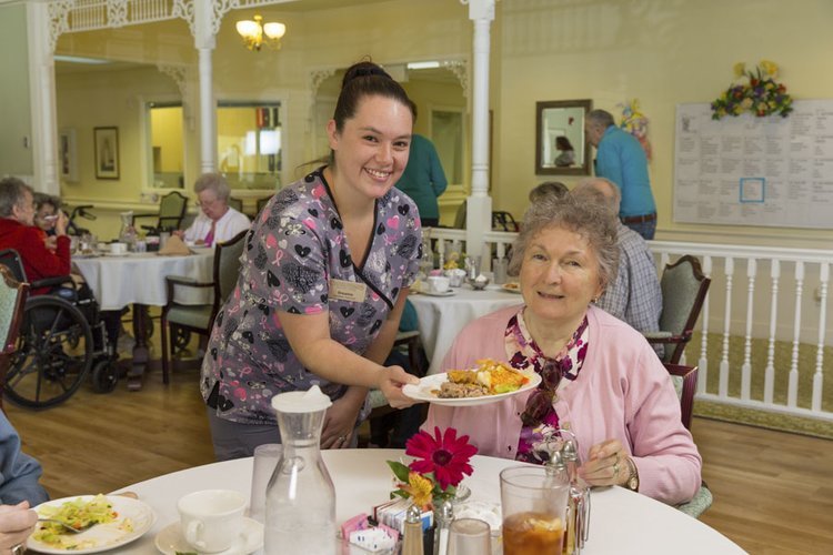 - Three meals daily in the elegant common dining room