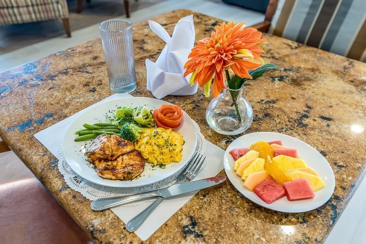 Residents at Healthpark Senior Living benefit from a comprehensive array of amenities and services designed to enhance their quality of life. These include 24-hour staff availability, personalized care plans, full-service salon and spa, concierge services, scheduled transportation, routine health assessments, and a pet-friendly environment. A full-time activity director ensures a vibrant calendar of life-enriching activities tailored to residents’ interests and abilities.