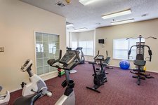 - Fitness room with machines and free weights