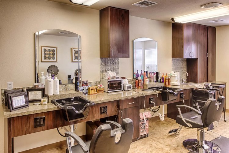 - Full-service beauty salon and barber shop