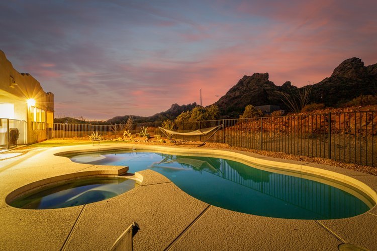 This Amazing Mountain Estates is Tucked into the base of the Goldfield Mountains with beautiful views of the Superstition Mountains, Goldfield Mountains and overlooking the city lights. Enjoy breathtaking Sunrises, sunsets and clear desert skies full of stars at night. Relax in heated pool & Spa that faces the foot of the Mountain with lots of privacy.