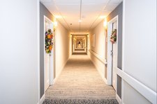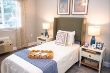 The community features a thoughtfully designed campus with approximately 105 apartments for independent living along with accommodations for assisted living and memory care residents. Floor plans include studio, alcove, one-bedroom, and two-bedroom options designed for comfort and accessibility. Apartments are equipped with features such as fully equipped kitchens or kitchenettes, spacious bathrooms, individually controlled heating and air conditioning, emergency communication systems, and safety features that help residents maintain independence while remaining connected to support staff.