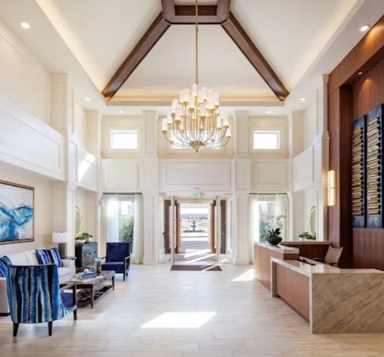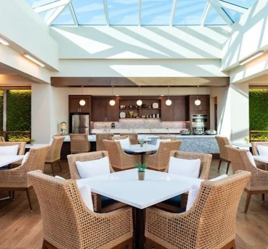 The community’s amenities rival those of a boutique resort, including multiple dining venues and a café-bistro, a salon and spa (Spa W), indoor and outdoor fireplaces, a theater, art and music studios, social gathering spaces, verandas, and a fitness/physical therapy center.