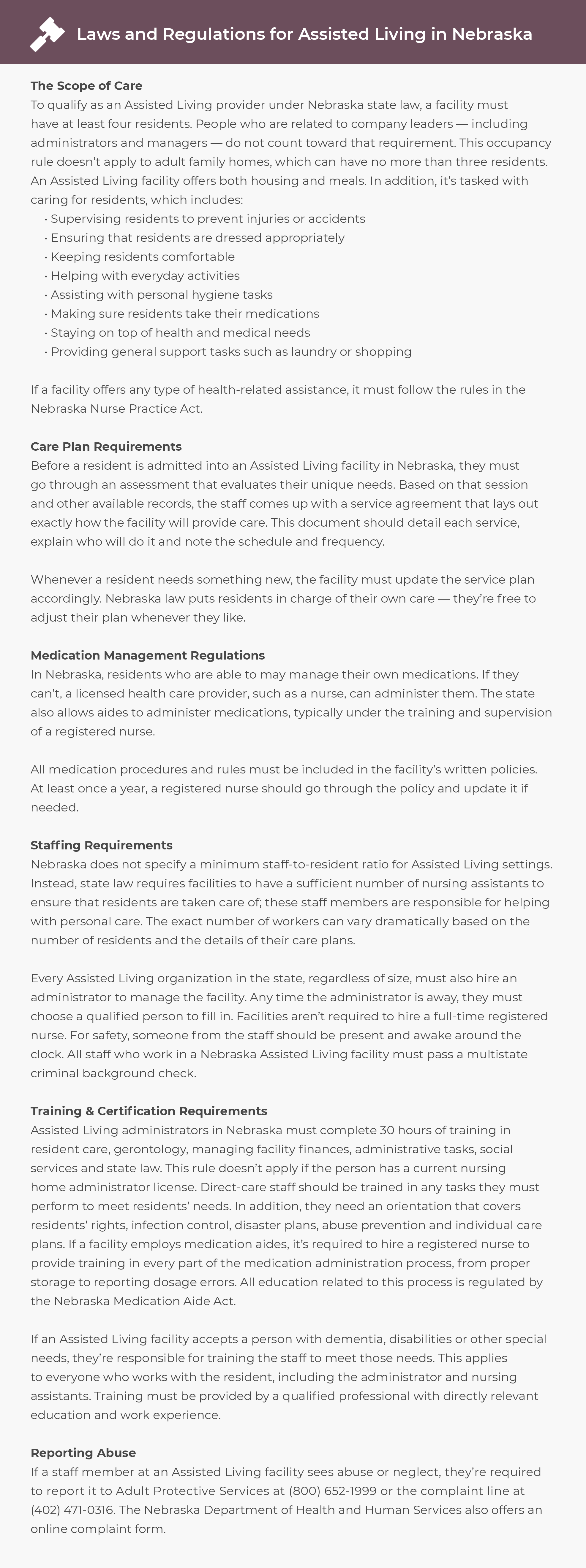 Assisted Living Laws and Regulations in Nebraska